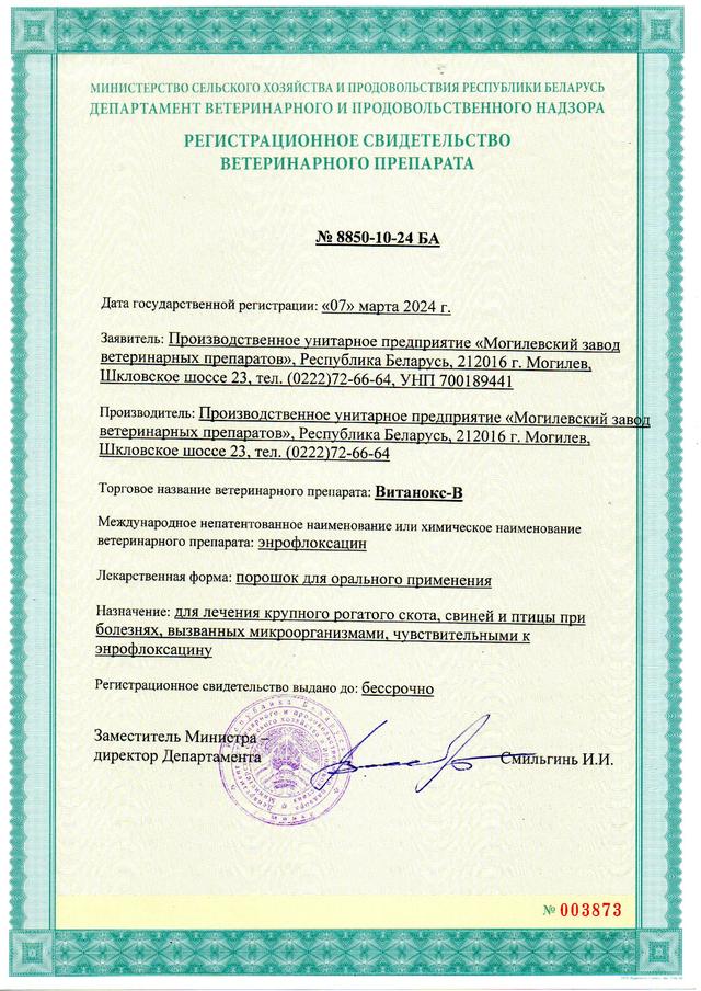 Витанокс-ВВ наличииОптом и в розницуЦену уточняйтеЗаказ только по телефону+375 (22) 276-05-88Сбыт+375 (22) 264-32-31 Директор+375 (22) 272-66-64 Бухгалтерия День Время работы Перерыв Понедельник 09:00 - 17:00 Вторник 09:00 - 17:00 Среда 09:00 - 17:00 Четверг 09:00 - 17:00 Пятница 09:00 - 17:00 Суббота Выходной Воскресенье Выходной * Время указано для региона: Беларусь, Могилев +375 (22) 276-05-88Сбыт+375 (22) 264-32-31Директор+375 (22) 272-66-64БухгалтерияВолков Сергей Витальевичул. Шкловское шоссе, 23, Могилев, Беларусь405097@gmail.comвозврат товара в течение 14 дней по договоренностиУсловия возврата и обмена Компания осуществляет возврат и обмен этого товара в соответствии с требованиями законодательства. Сроки возврата Возврат возможен в течение 14 дней после получения (для товаров надлежащего качества). Обратная доставка товаров осуществляется по договоренности. Согласно действующему законодательству вы можете вернуть товар надлежащего качества или обменять его, если: товар не был в употреблении и не имеет следов использования потребителем: царапин, сколов, потёртостей, пятен и т. п.; товар полностью укомплектован и сохранена фабричная упаковка; сохранены все ярлыки и заводская маркировка; товар сохраняет товарный вид и свои потребительские свойства. Витанокс-ВВ наличииЦену уточняйте+375 (22) 276-05-88Сбыт+375 (22) 264-32-31 Директор+375 (22) 272-66-64 Бухгалтерия Описание ХарактеристикиОсновные атрибутыСтрана производительБеларусьПроизводитель Могилевский завод ветеринарных препаратовИнформация для заказаЦена: Цену уточняйте
